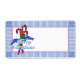 Um grupo de doces brancos e vermelhos amarrados com fita azul e holly em etiquetas de endereço de volta de Natal com fundo azul de tecelagem de cesto que enviam uma mensagem de Feliz Natal. Nos especializamos em designs feitos por medida, então entre em contato conosco se você quiser um layout feito por encomenda exclusivo usando este design básico de cana doce.