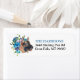 O lado esquerdo destas etiquetas de endereço de retorno apresenta uma bela imagem aquática de um Cão German shepherd emergente de um buquê de flores azuis e roxas. Seu texto personalizado está em azul e preto à direita.