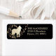 Esta etiqueta bonito do endereço de retorno apresenta uma imagem dourada da silhueta belga Tervuren Dog em frente a uma espiral de estrelas douradas. A imagem é colocada sobre um fundo preto dramático. O seu texto personalizado é dourado à direita da imagem.