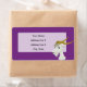 Design personalizado com ilustração de uma cabeça de cabra branca fofa em fundo roxo, design para crianças, com modelo de texto personalizável para seu nome ou mensagem