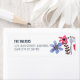 Um convite de casamento chic e fresco com flores brancas, pintadas à mão e roxas em um fundo azul marinho acentuado com a caligrafia moderna do roteiro dourado. Design original por Impressões de empate Gatinho.