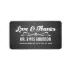 Chalkboard com Casamento de Script Branco Obrigado Devolva a Etiqueta de Endereço. Design por Elke Clarke© para MonographicGallery, impressa por Zazzle. Envie suas cartas de agradecimento aos seus amigos e familiares usando esta maravilhosa e simples etiqueta com as palavras "Amor e Obrigados" escritas em uma cobertura de texto de escrita de caligrafia manual. Você pode personalizar com seus nomes casados. Efeito fotográfico impresso do fundo preto do quadro negro. Outras cores disponíveis.