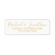 Rótulo de Endereço de Retorno de Casamento Branco e Dourado do Script Moderno, com noiva e nome de noivo na fonte de caligrafia moderna e endereço no estilo de fonte sans serif moderno. Note que os detalhes da folha são simulados no trabalho de arte. Não será utilizada nenhuma folha de alumínio real no fazer deste produto.