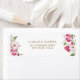 Etiquetas de endereço de retorno elegantes com lindas flores rosa em fundo branco.