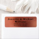 A etiqueta de volta do casal elegante de cobre, casado, com cobre metálico moderno para um dia de casamento memorável. Esta suíte de casamento tem sotaques de cobre para dar ao seu dia especial um elegante estilo moderno e sofisticado. Excelente de design do TLS Designs © Tamra Sellier.