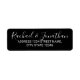 Rótulo de Endereço de Retorno de Casamento Preto e Branco do Script Moderno com noiva e nome de noivo em letra de caligrafia elegante e endereço no estilo de fonte sans serif moderno.