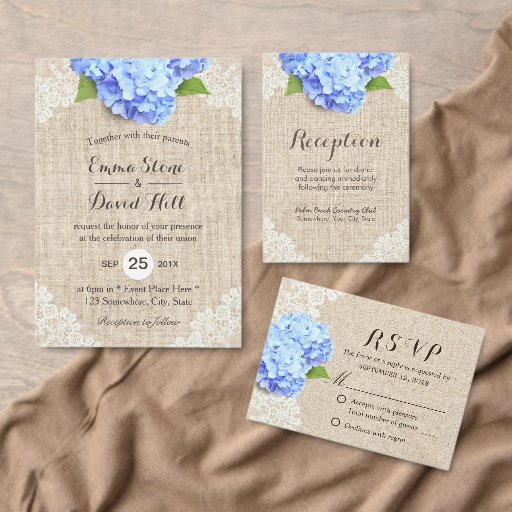 Etiqueta Casamento Rustic Blue Hydrangea Lace & Burlap