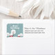 A neve ilustrada e bonita cobriu a vizinhança com o texto Feliz Natal nas etiquetas de endereços personalizadas.