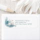 As etiquetas de endereços de retorno no tema natalino, com belas placas gráficas de aquarela de cervos brancos e pinheiros, feitas em cores pastel macio. Personalize o texto cor azul empoeirado com suas informações.