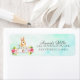 Bonito floral rosa e xícaras de chá com uma etiqueta de endereço de retorno de coelho adorável.
