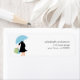 Etiquetas de endereço com tema de chá de fraldas lindas com ilustração fofa de uma mãe grávida segurando um guarda-chuva azul.