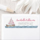 Esta doce etiqueta de endereço de retorno apresenta um belo veleiro rosa e branco navegando através de ondas suaves do oceano, com um padrão de ondas suaves no fundo. Uma mistura de fontes cor-de-rosa e cinzas combina guião e tipografia serif para um aspecto charmoso e elegante. Perfeito para convites para chuveiros de bebês ou notas de agradecimento, funciona lindamente com temas náuticos como "Bebê no Conselho" e "Âncoras Longe". Todo texto, fontes e cores são personalizáveis para corresponder ao estilo do evento. Um toque perfeito para um chá de fraldas com tema náutico!