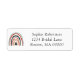 Etiqueta de Endereço de Devolução Chá de Noiva Boho Natal Arco-Íris... Um arco-íris desenhado à mão em estilo boho nas cores vermelhas e verdes do Natal apresenta uma árvore de Natal em seu centro. À direita está o texto do endereço de devolução para um rótulo de envelope de chá de noiva da temporada de Natal em tipografia itálica romântica. Todo o texto pode ser facilmente revisado no modelo de personalização.