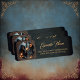 Chamas Góticas, a guardiã dos dados queimados. A figura do Grim Reaper situa-se no meio de um círculo de dados queimados, lembrando pequenas fontes de incêndio e sugerindo energias mágicas ou apocalípticas. O fundo escuro e turvo reforça a atmosfera mística e sombria.