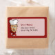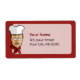 Cabeça de chef com chapéu, corcunda vermelha e texto personalizado.