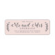 Chic, moderno e simples etiqueta de volta do casamento com o texto do futuro Sr. e Sra. em uma caligrafia elegante fora de preto em um fundo cor-de-rosa pastel com um toque na moda de folhagem rústica. Basta adicionar seu nome e endereço. Desenvolvido exclusivamente para você pelo Happy Dolphin Studio. Se precisar de ajuda ou produtos correspondentes, entre em contato conosco através do bate-papo da loja. Estamos felizes em ajudá-lo a fazer seu casamento o dia mais bonito!