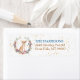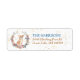 O lado esquerdo destas etiquetas de endereço de retorno apresenta uma imagem de uma coroa de primavera em cores de rosa mole, azul, dourado, verde e creme. No centro está um retrato aquoso de um adorável Chihuahua. Pequeno confete de ouro dá um brilho sutil ao fundo. Seu texto personalizado está em ouro azul e marrom à direita.