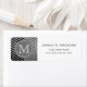 Legal padrão geométrico preto, cinza e giz zigzag branco com placa de identificação da cinza para a letra inicial do monograma personalizado. Rótulos de endereços modernos com monograma.