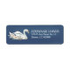 Estas etiquetas de endereço de retorno apresentam um lindo cisne flutuando ao lado de um buquê de rosas brancas. Seu texto personalizado está em branco à direita. A imagem e o texto são colocados em um plano de fundo azul gradiente. Esta etiqueta de endereço de retorno corresponde a convites de casamento e outros produtos de casamento na nossa loja.