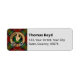 Crachá da crista Clan Boyd rodeado por uma correia e fivela sobre fundo tartano. Campos de texto personalizados para nome e endereço.