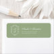 Classic and elegant, this sage green and white monogram crest wedding label features refined script typography and a timeless floral frame, perfect for addressing envelopes, favors, invitations, and coordinated wedding stationery with a cohesive, sophisticated look.