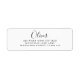 Este rótulo de endereço de devolução moderno e elegante em preto e branco apresenta dois tipos de fonte, estilo de escrita à mão para o nome, assinatura e uma fonte formal em negrito para o endereço.