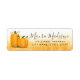 Devolva etiquetas de endereço com duas abóboras em um plano de fundo de abertura de cor d'água laranja e branca. Campos de modelo personalizáveis para seu nome e endereço.