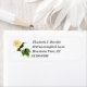 Um beija-flor verde brilhante com um tórax branco e tochas de cauda numa planta de hibisco amarelo. Carimbos de correio e artigos de papelaria personalizados disponíveis.