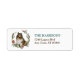 Estas etiquetas de endereço de retorno têm uma imagem de um belo cão Collie sentado num bonito vergreen, berry, e coroa floral. Seu texto personalizado está em verde-claro e marrom à direita da imagem. Estes rótulos são especialmente adequados para as estações do outono e do inverno, mas são bonito durante todo o ano.