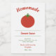 Um adesivo com rótulo de garrafa para os seus produtos caseiros à base de tomate (molho, suco, gazanato, molho de pizza, molho de esparguete, etc.) para os vender ou oferecer. Vem com uma ilustração de tomate vermelho e textos personalizáveis em cores vermelha e verde.