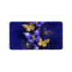 Composição de borboletas luxuosas de safira e joias de ouro sobre fundo texturizado a azul.