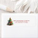Esta rústica design de etiqueta de retorno de árvore de Natal apresenta uma brilhante árvore de cor de água vermelha, verde e dourada. Adicione seus detalhes para torná-lo seu.
