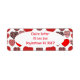 Estas etiquetas de endereço de retorno têm uma design de repetição de corações com diferentes dentro gráficos num campo de branco.