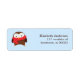 Ilustração adorável de uma coruja marrom de desenho animado vestindo um cachecol bolinhas vermelho, empoleirada em um galho de árvore em um fundo azul de neve.