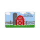 Um bom e velho celeiro vermelho do país, com uma trilha branca. Um silo ao seu lado e uma cerca rústica. grama verde e algumas nuvens no céu. Personalize com todas as suas novas informações de endereço para personalizar.