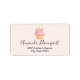 Etiquetas de endereço com desenho de aquarela de um cupcake com cobertura cor-de-rosa, um chifre unicórnio e rosas coloridos.