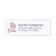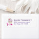 Etiquetas de endereço com uma ilustração de um cupcake delicioso com espirais cor-de-rosa e uma baga com folhas aninhadas no glacé.