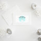 Um simples design com um boneco de neve em um globo de neve aqua, com colinas de neve e flocos de neve.