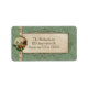 Rich Victorian inspirou um design com vinheta circular de uma cena de inverno em um quadro de filigrana dourada com fitas holly trim e satin em um fundo verde de damasco de caçador macio em pergaminho embelezado.
