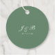Esta etiqueta de agradecimento de casamento apresenta um lindo buquê de flores com tipografia simples em cor verde. Um monograma inicial simples está no verso. Será um belo toque final para os brindes do seu casamento/festa.