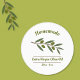 Rotule o seu azeite caseiro para os vender ou oferecer (num casamento, por exemplo) com este adesivo de comida, incluindo uma ilustração de um ramo de oliveira.