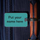 Essas etiquetas acrílicas resistentes a UV e à impermeabilização são de 2" x 3,5" (tamanho do cartão de visita) e estão prontas para atender às suas exigências de viagem. Eles até estão completamente equipados com uma correia de bagagem de couro!