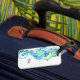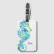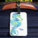 Esta etiqueta de bagagem personalizada é mostrada em branco com um design de impressão de cavalo azul. Personalize esta etiqueta e altere o nome do exemplo para o seu com este modelo.
