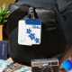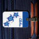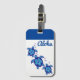 A etiqueta de bagagem personalizada é mostrada num design impressão de tartarugas azuis tropicais giratórias. Mostrado com o slot da placa. Personalize esta etiqueta com este modelo ou comprar como está.