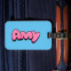 O nome Amy no texto do estilo bublegum cor-de-rosa cômico.