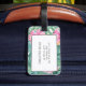 Esta etiqueta de bagagem tropical apresenta flores rosa-d'água e folhas de palma verdes. Arte de Victoria Grigaliunas do DoTellABelle. Personalize os campos modelo com seu nome, número de telefone e endereço.