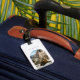 Este design de etiqueta de bagagem apresenta um fundo branco limpo que desenhar a atenção para a foto personalizada abaixo, que é enquadrada em forma de arco mole, dando ao design um toque refinado e artístico. Acima da imagem, o nome da família é apresentado em uma fonte serif clássica, adicionando um eterno e um toque sofisticado. A precinta de couro preto com uma fivela de fecho de latão fornece uma fixação segura, assegurando que a etiqueta permaneça na moda e durável em todas as suas viagens. Essa design é perfeita para quem estima momentos íntimos e valoriza a serenidade da natureza, fazer-a um companheiro ideal para cada aventura.