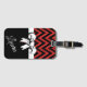 Gavão vermelho e preto, padrão de design ziguezague com um arco branco e preto. Personalize com seu nome ou como quiser. Etiqueta de bagagem colorida para encontrar facilmente sua mala no carrossel de bagagem do aeroporto para você, sua mãe, pai, tio, tia, irmão, irmã, vizinha, avô, avó, marido, esposa, amigo ou colega de trabalho que viagem muito por negócios ou prazer.