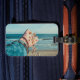 Etiqueta de bagagem bonito e na moda com areia de praia e design de conchas - excelente para viagem de verão!