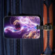 Esta etiqueta de bagagem tem um design artístico.